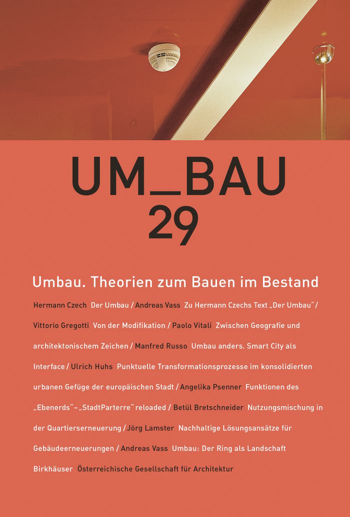 Der Untertitel dieses Hefts, „Theorien zum Baumen im Bestand“, ist dabei durchaus in einem Spannungsverhältnis zu lesen, wie aus den einleitenden Grundsatztexten hervorgeht, die Hermann Czech und Vittorio Gregotti (hier erstmals auf Deutsch) für diese Ausgabe zur Verfügung gestellt haben. Beide Texte wurden zuerst in den 1980er Jahren publiziert, gehen aber in ihrem gedanklichen Ansatz auf die 1960er Jahre und die damals einsetzende Kritik an den atopischen Grundannahmen einer auf wirtschaftliche und technische Parameter reduzierten Moderne zurück. Sie sind heute insofern von besonderem Interesse, weil die Erkenntnis, dass voraussetzungsloses Planen eine Fiktion ist, die Architektur ihrer gesellschaftlichen Relevanz beraubt, selbst zu einem architektonischen Topos geworden ist, der gedankenlos als „Bauen im Bestand“ weitergereicht wird. Von unterschiedlichen, auch durch jeweils lokale, Wiener bzw. italienische Diskurse und Denktraditionen gespeisten Zugängen aus zeigen Gregotti wie Czech, dass die „Modifikation“ bzw. der Umbau keine neutrale Distanz zum Vorhandenen zulässt, also nicht etwa „im Bestand“ (wie zuvor „auf der grünen Wiese“) das „Neue“ herausstellt, sondern mit einer „dialektischen Auseinandersetzung mit dem spezifischen Kontext“ einhergeht (Gregotti), bzw. mit dem Vorgefundenen „eine neue Einheit ein[geht], die ein vollgültiges Werk darstellt“ (Czech). Ergänzend werden diese Ansätze im ersten Abschnitt von UMBAU 29 ihrerseits in Texten von Paolo Vitali und Andreas Vass im Kontext der Entwicklungslinien verortet aus denen sie hervorgegangen sind.
