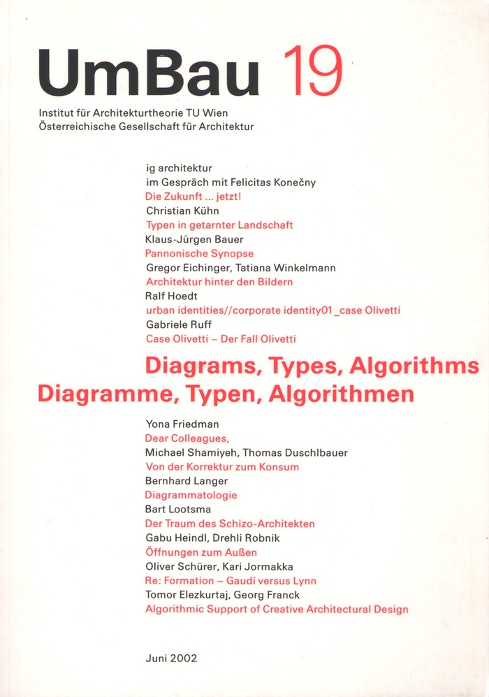 Herausgegeben von der Österreichischen Gesellschaft für Architektur und dem Institut für Architekturwissenschaften, Abteilung für Architekturtheorie, TU Wien Mit Beiträgen von Christian Kühn, Klaus-Jürgen Bauer, Gregor Eichinger, Ralf Hoedt, Gabriele Ruff, Yona Friedman, Michael Shamiyeh, Thomas Duschlbauer, Bernhard Langer, Bart Lootsma, Gabu Heindl, Drehli Robnik, Oliver Schürer, Kari Jormakka, Tomor Elezkurtaj, Georg Franck
