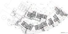 Der Bereich der Neubauten umfasst 32 frei finanzierte Wohneinheiten in den Größen von 60m² bis 270m². Sämtliche dieser Wohnungen sind entsprechend der Grünlage mit Gärten, Balkonen und Terrassen ausgestattet. Die einzelnen Häuser gruppieren sich um einen intimen Grünbereich mit Altbaumbestand. Die ostseitig gelegenen Wohnungen wurden nach einem sehr komplexen Raumplan entwickelt, der mit verschiedenen Ebenen und Raumhöhen auf die Topographie des Ortes reagiert. Die Geländeformation wurde so modelliert, dass sie in ihrer Terrassierung eine Affinität zu den umgebenden Weinbergen herstellt.