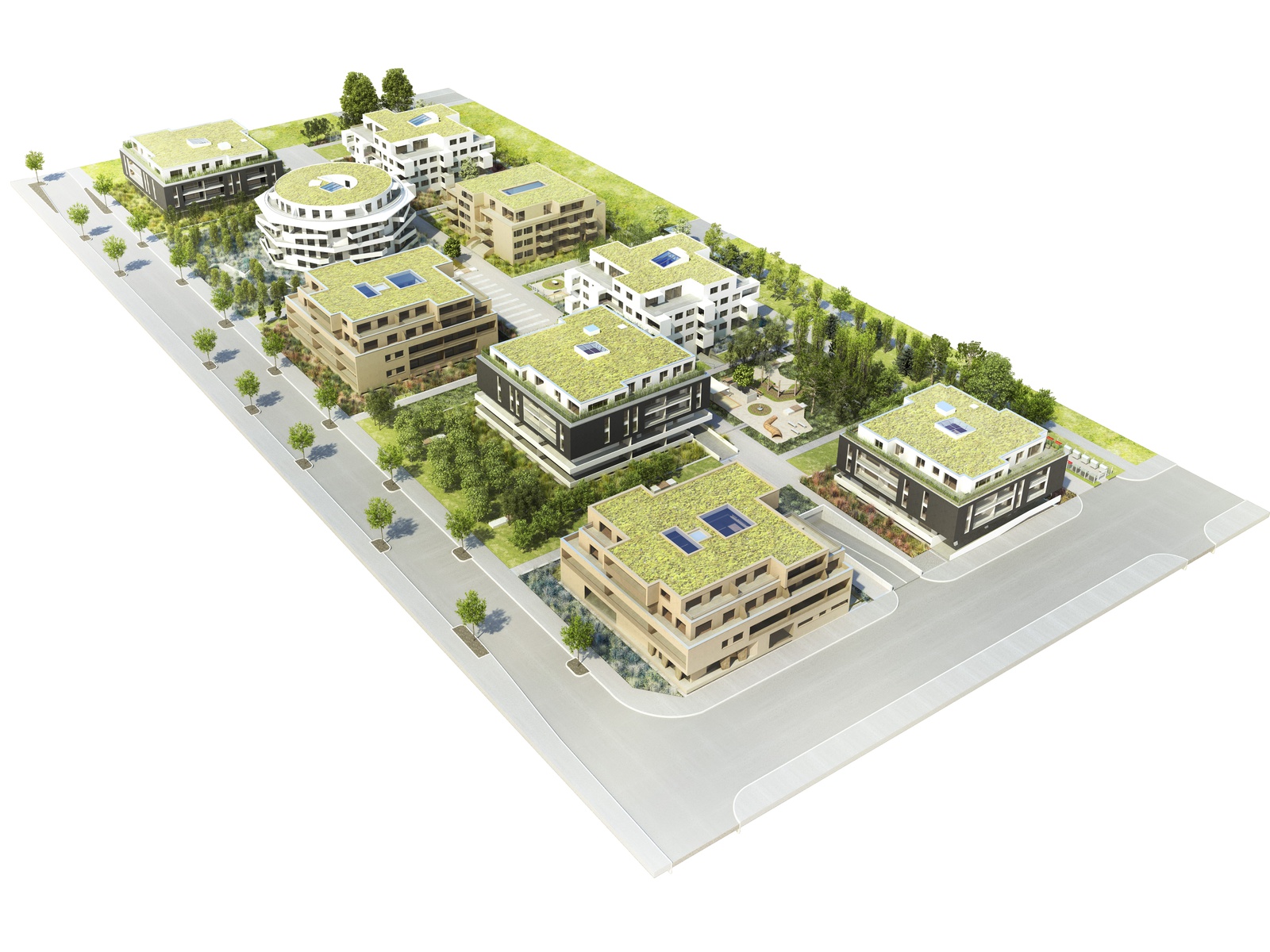 Offenheit, Transparenz, Übersicht sind die Themen, die den Städtebau und die Architektur bestimmen, aber auch Leitmotiv für Sicherheit und die Soziale Nachhaltigkeit sind. Die 9 Punkthäuser ermöglichen verschiedenste Blickbeziehungen und eine außenräumliche Erlebnisvielfalt im Quartier. Großzügige Durchwegung und offene Zonierungen schaffen Übersicht, Orientierbarkeit und Identifikation.