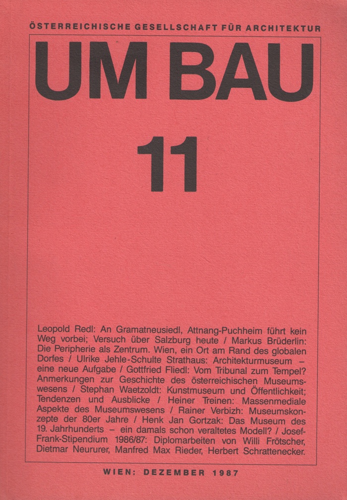 Josef Frank-Stipendium 1986/87: Diplomarbeiten von Willi Frötscher, Dietmar Neururer, Manfred Max Rieder, Herbert Schrattenecker