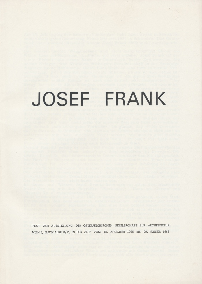 Wiederabdruck des Textes von Kurrent/Spalt aus: Die Furche 29/1965 anlässlich des 80. Geburtstags von Josef Frank
