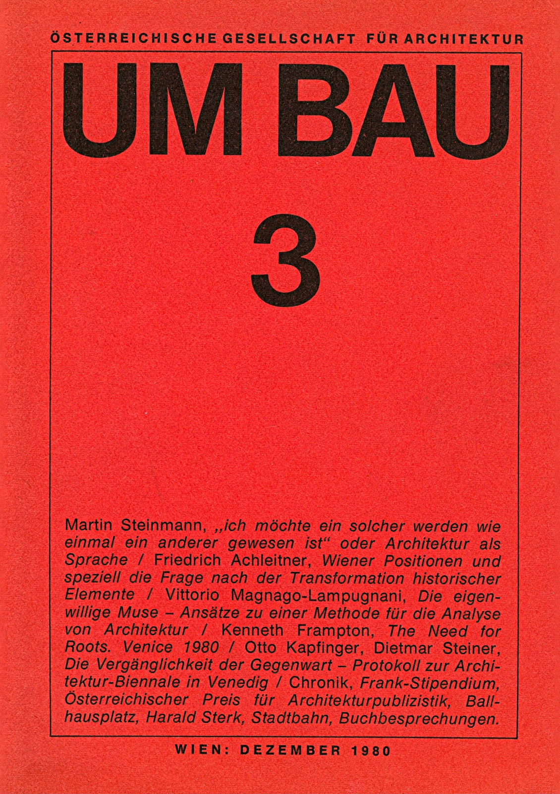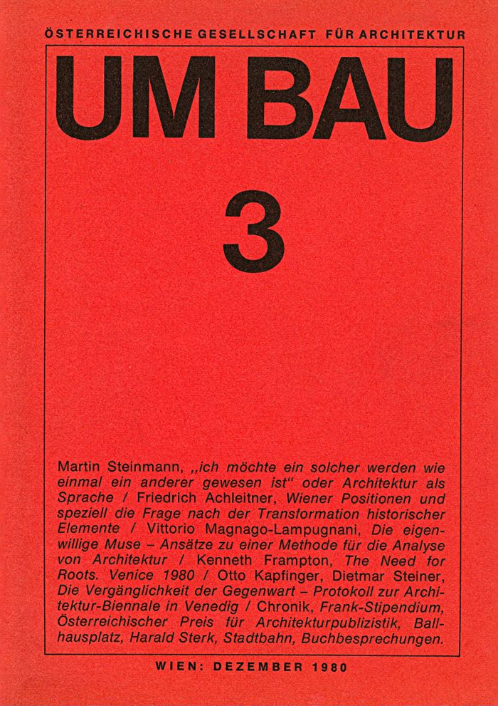 Diese Kurzcharakteristik wurde am 31.März 1980 am Institute for Architecture and Urban Studies in New York als erster von ca.50 Vorträgen in 10 verschiedenen Universitätsstädten in englischer Sprache gehalten. R.Kohouteks Beitrag wird in einem nächsten UMBAU erscheinen.