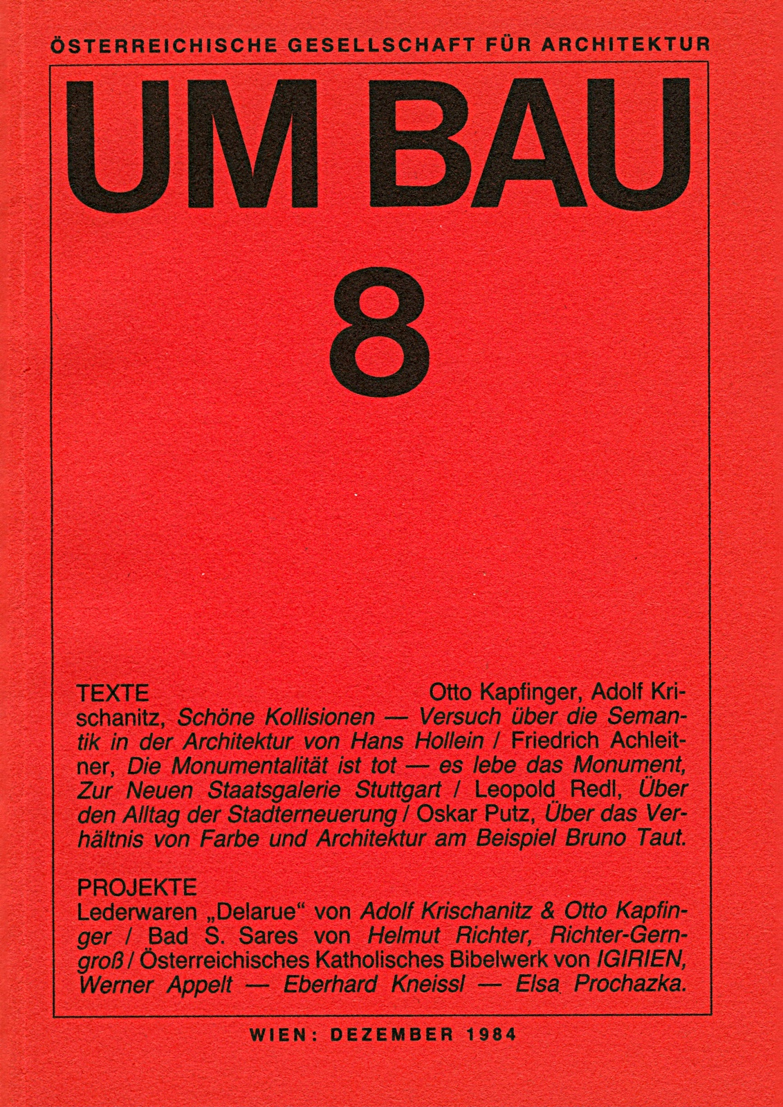 UmBau erlangte seine Reputation nicht nur aufgrund seiner fundierten Beiträge, seiner Analysen und Kritiken. UmBau wurde auch gesehen als Bestandteil der Neuen Wiener Architektur (und das haben wir nicht nur aus Graz erfahren). Obwohl, allen Klaustrophobien und Paranoien zum Trotz, die Arbeiten dieser Architektur im UmBau nur selten zu Wort und Bild gelangten. Die einzige "Schuld" des UmBau war: zur richtigen Zeit am richtigen Ort entstanden zu sein. Einige klärende Daten dazu: 1980 die so genannte New-Wave-Ausstellung in den Vereinigten Staaten. 1982 die Ausstellung "Versuche zur Baukunst"und rundherum viele Österreich-Hefte der einschlägigen Medien. So wurde wieder einmal Wien entdeckt. Und am UmBau vermeinte man zu erkennen, dass in Wien so etwas wie eine Architekturdiskussion stattfinden könnte. (Auch wenn dem so wäre, würde es diese Stadt als allerletzte bemerken.)
